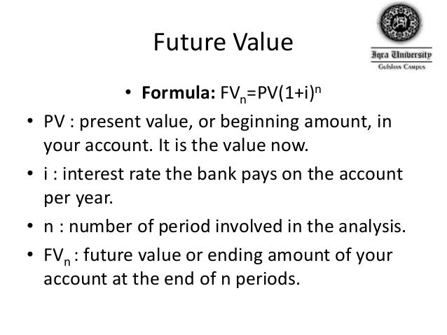 Future value is the value of an asset at a specific date. This was a very simple example. Earning.5% per month is not the same as earning 6% per year, assuming that the monthly earnings are reinvested. Future value is the value of an asset at a specific date.